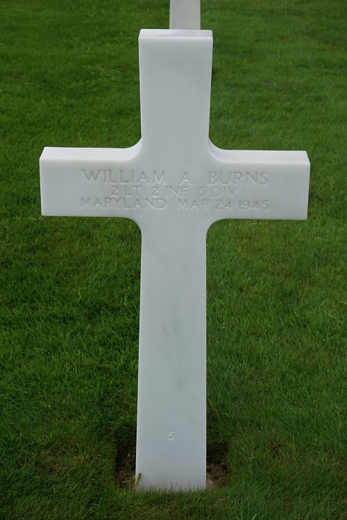 2nd Lt Burns graduated from Loyola Blakefield Jesuit School in 1942.His father, a West Point graduate and field artillery officer, was killed in an accident at Fort Bliss, a few weeks before his son was born.