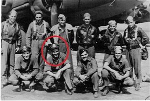 "Hit by flak over Schweinfurt on Oct 14, 1943. We lost the formation and headed for France. At 18,000 feet we caught fire, fighters came in to finish us off. We began bailing out ... My chute opened just before I hit the ground. Lt. Dodge's chute did not open..."