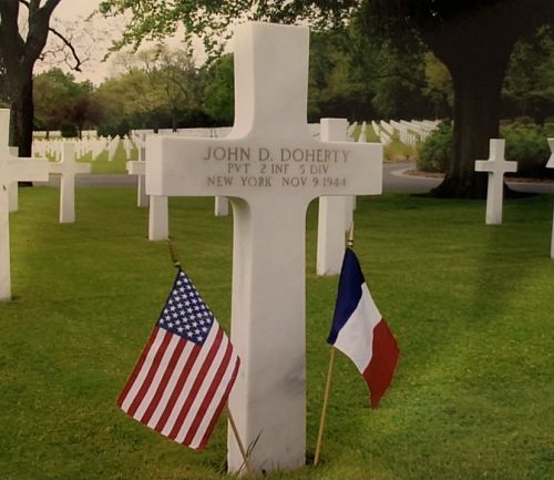 Pvt John D. Doherty attended high school for three years and worked in an aircraft constructing factory before he enlisted in Buffalo, New York on 23 December 1943.Source of information: Leo Minne, www.abmc.gov, www.archives.gov – WWII Enlistment Record, www.ancestry.com - 1930/1940 Census / Slattum Family Tree / U.S., World War II Draft Cards Young Men, 1940-1947