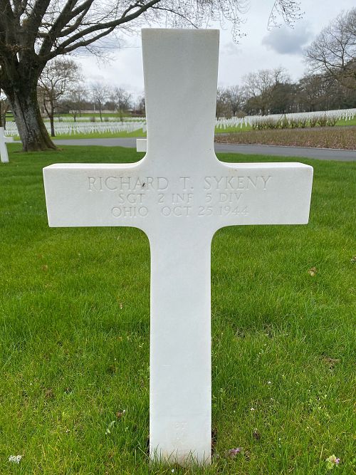 Sgt Richard T. Sykeny graduated from high school in Cleveland and worked there as a government employe in a payroll office.He enlisted in Cleveland, Ohio on 14 February 1941 and was sent overseas in January 1942.