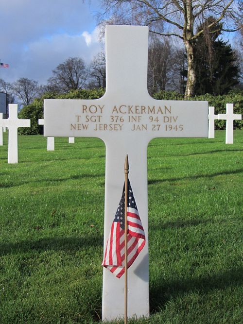 T/Sgt Roy Ackerman was a bartender before he enlisted in Newark, New Jersey on 2 April 1942.He was crossing a road when he was killed by small arms fire.