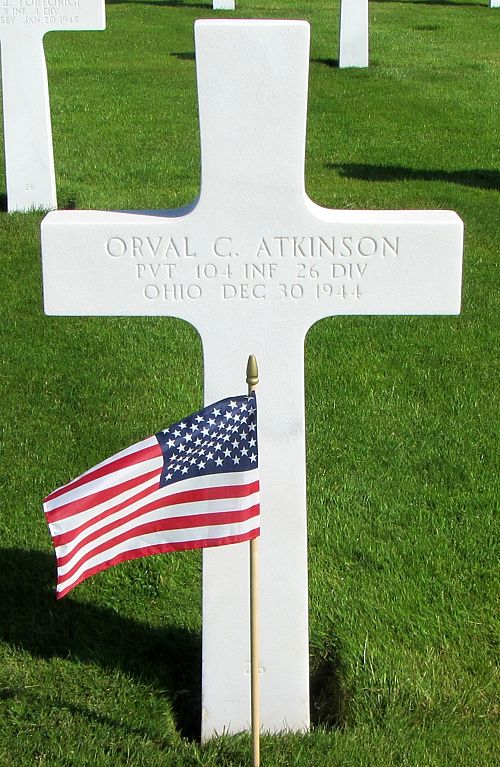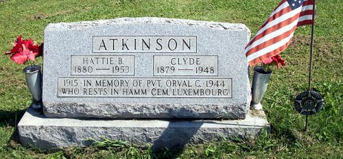 Pvt Orval C. Atkinson worked on the family farm before he enlisted at Fort Hayes, Ohio on 18 April 1942.He was killed by artillery shell fragments in his stomach and chest.