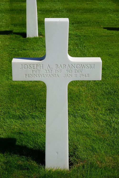 Pvt Joseph A. Baranowski attended high school for 1 year before he enlisted in Pittsburgh, Pennsylvania on 18 May 1943. He was sent overseas in August 1944.Source of information: Peter Schouteten, www.abmc.gov, www.wwiimemorial.com, www.archives.gov - WWII Enlistment Record, www.ancestry.com - Headstone and Interment Record / Pennsylvania Veteran Compensation Application Files WWII, www.findagrave.com