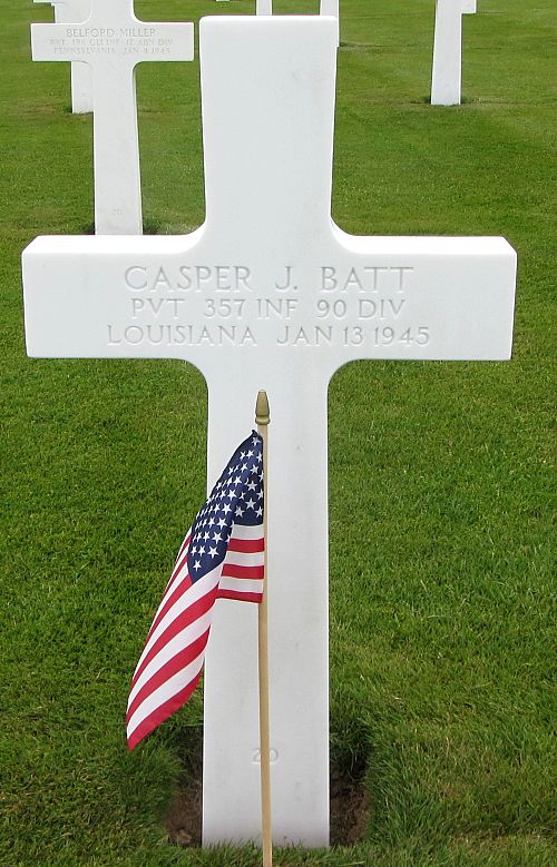 Pvt Casper J. Batt died of wounds, received on 12 January 1945.Source of information: Peter Schouteten, www.abmc.gov, www.wwiimemorial.com, www.ancestry.com - Headstone and Interment Record / Stewart Family Tree / U.S. WWII Draft Cards Young Men / Bene Barient Family Tree