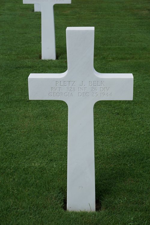 Pvt Pletz J. Belk attended high school for four years before he enlisted at Fort McPherson, Georgia on 12 June 1943.He was killed by artillery shell fragments.