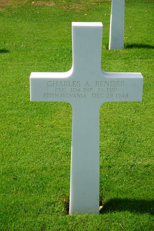 Pfc Charles A. Bender attended high school for four years and worked on a farm before he enlisted in Baltimore, Maryland on 22 February 1943.He was killed by artillery shell fragments in his chest.