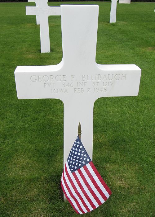 Pvt George T. Blubaugh was an electrician before he enlisted at Fort Leavenworth, Kansas on 20 July 1944 and he was sent overseas in December 1944.He was reported wounded in action on 31 January 1945.