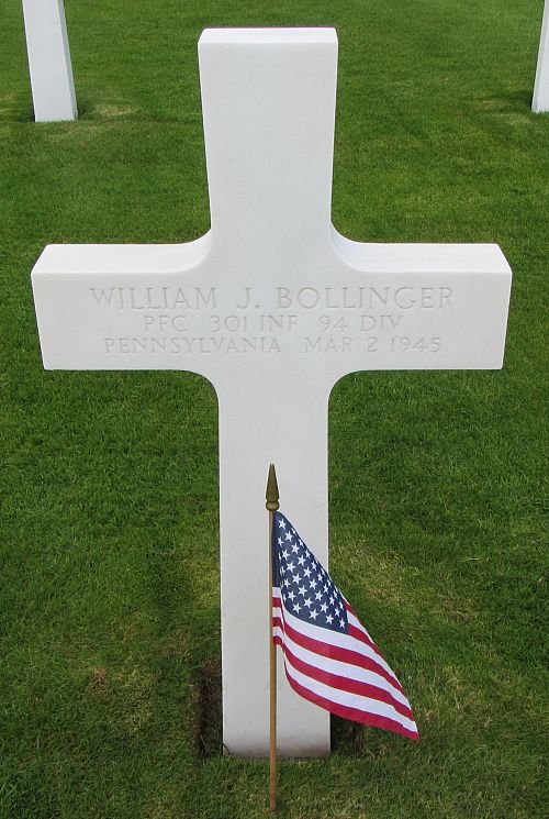 Pvt William J. Bollinger was a driver before he enlisted in Altoona, Pennsylvania on 18 September 1942.Source of information: Peter Schouteten, www.abmc.gov, www.wwiimemorial.com, www.archives.gov - WWII Enlistment Record, www.ancestry.com - Headstone and Interment Record / Pennsylvania Veteran Compensation Application Files / 1930 Census / U.S. WWII Draft Cards Young Men, http://www.94thinfdiv.com, www.findagrave.com
