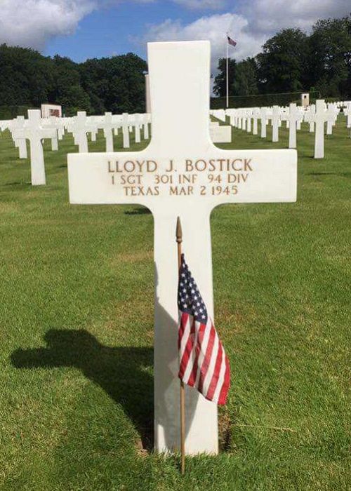 1st Sgt Lloyd J. Bostick attended 1 year of college before he enlisted at Fort Bliss, Texas on 1 July 1941.Source of information: Peter Schouteten, www.abmc.gov, Peter Schouteten, www.abmc.gov, www.wwiimemorial.com, www.archives.gov – WWII Enlistment Record, www.ancestry.com - Headstone and Interment Record / Bostic Family Tree / Wright Barrett et al Tree / New Mexico WWII Records, http://www.94thinfdiv.com, www.findagrave.com – a2