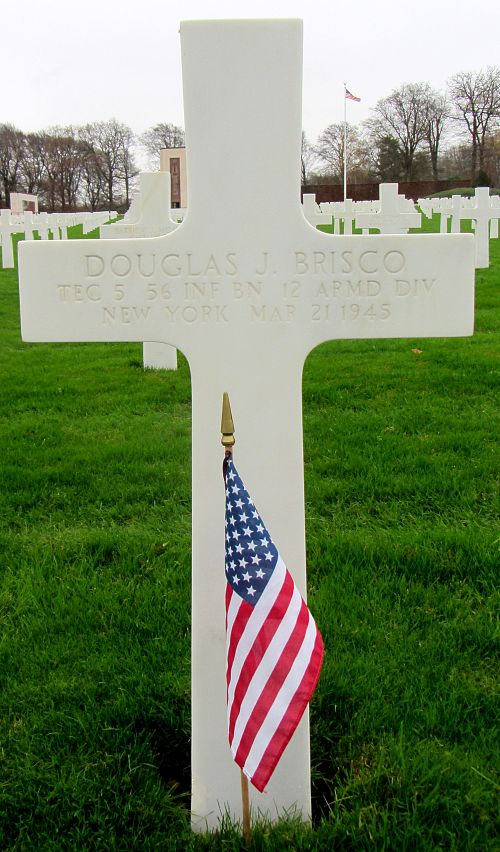 T/5 Douglas J. Brisco enlisted in Rochester, New York on 12 October 1942.Source of information: Peter Schouteten, Terry Hirsch, www.abmc.gov, www.wwiimemorial.com, www.archives.gov - WWII Enlistment Record, www.ancestry.com - Headstone and Interment Record / Terrill Hayes Tree, http://www.12tharmoredmuseum.com, WWII Draft Card