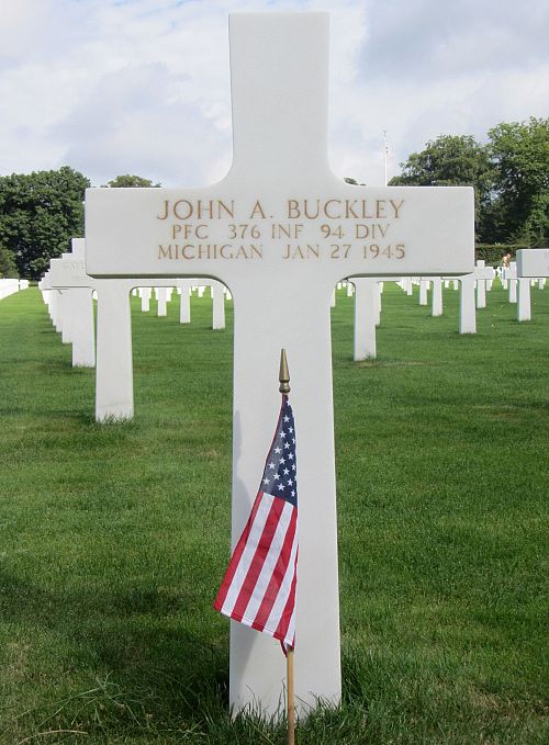 Source of information: Peter Schouteten, Terry Hirsch, www.abmc.gov, www.wwiimemorial.com – John A. Buckley, www.ancestry.com - Headstone and Interment Record / Mary Gerrard Family Tree, http://www.94thinfdiv.com, WWII Draft Card, Petition for Citizenship