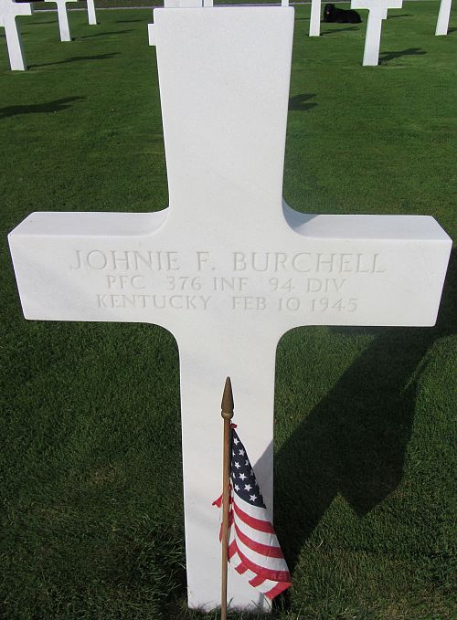 Pfc Johnie F. Burchell worked on a farm before he enlisted in Fort Thomas Newport, Kentucky on 9 March 1944.Source of information: Peter Schouteten, www.abmc.gov, www.wwiimemorial.com, www.archives.gov – WWII Enlistment Record, www.ancestry.com - Headstone and Interment Record / Burchell Family Tree / 1920/1930 Census, http://www.94thinfdiv.com