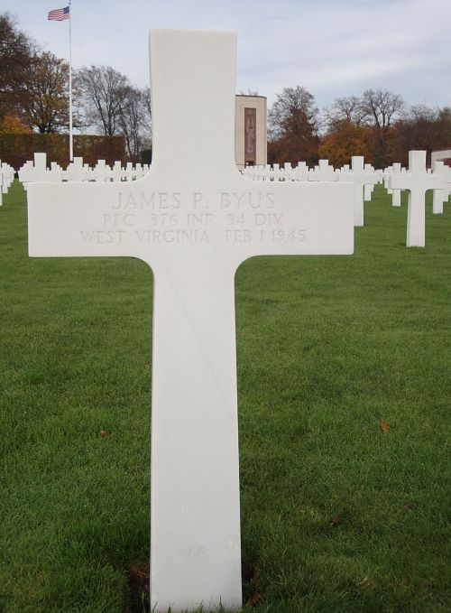 Pfc James P. Byus worked on a farm before he joined the Regular Army in Fort Hayes Columbus, Ohio on 10 December 1943.Source of information: Peter Schouteten, www.abmc.gov, www.wwiimemorial.com, www.archives.gov – WWII Enlistment Record, www.ancestry.com - Headstone and Interment Record / Waugh Van Sickle Family Tree / 1930 Census, http://www.94thinfdiv.com, www.findagrave.com - Carrie Bias Hoffert