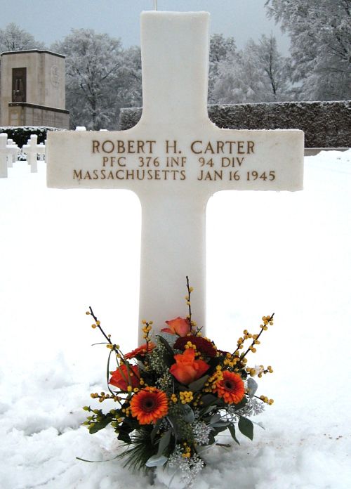Pfc Robert H. Carter was employed as the manager of the Henry Dine i Mart.He enlisted in Boston, Massachusetts on 20 January 1944 and was sent overseas in July 1944.