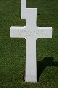 2nd Lt Cecil P. Coburn was a student at Virginia Military Institute when he entered the service in Lexington, Virginia on 2 June 1942.Source of information: Peter Schouteten, www.abmc.gov, www.wwiimemorial.com – Orville L. Kline / McVMI 1943, www.archives.gov – WWII Enlistment Record, www.ancestry.com - Headstone and Interment Record / U.S. WWII Draft Cards Young Men / 1930 Census, http://www.94thinfdiv.com, www.findagrave.com – a2