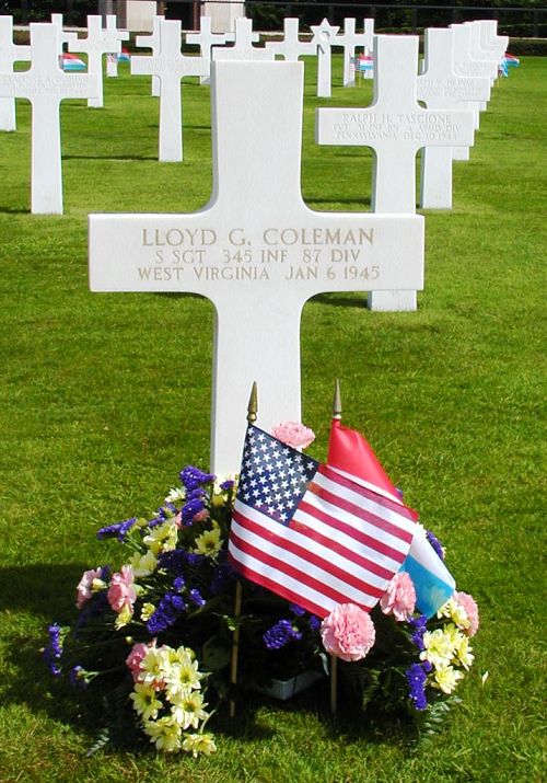 S/Sgt Lloyd G. Coleman attended college for one year and was a clerk general office before he volunteered for the Army of the United States at Fort Thomas Newport, Kentucky on 15 July 1942. He was sent overseas in October 1944.He was first buried at the Temporary American Military Cemetery in Grand Failly, France.