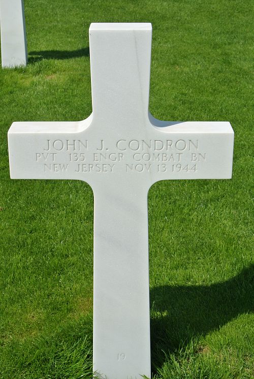 Pvt John J. Condron was employed at General Electric in Bloomfield, New Jersey before he enlisted.Source of information: Peter Schouteten, www.abmc.gov, www.wwiimemorial.com, www.archives.gov, www.ancestry.com - Headstone and Interment Record / Hoard Family Tree / U.S. WWII Draft Cards Young Men