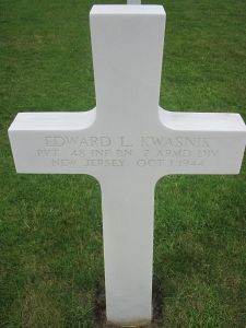 Pvt Edward L. Kwasnik attended four years of high school and enlisted at Fort Dix, New Jersey on 1 March 1944.Source of information: Peter Schouteten, Carla Mans, www.wwiimemorial.com, www.archives.gov, www.ancestry.com - U.S. WWII Draft Cards Young Men, http://www.7tharmddiv.org/index.htm