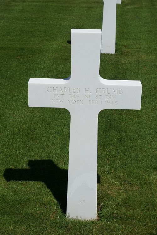 Pvt Charles H. Crumb worked at the Utica Knitting Company before he enlisted in Binghamton, New York on 25 January 1943.Source of information: Peter Schouteten, www.abmc.gov, www.wwiimemorial.com, www.archives.gov – WWII Enlistment Record, www.ancestry.com - Headstone and Interment Record / 1940 Census / New York State Birth Index / U.S. WWII Draft Cards Young Men, http://87thinfantrydivision.com