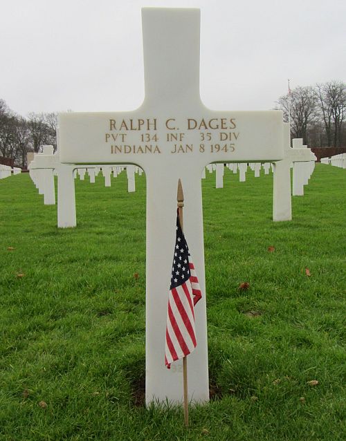 Source of information: Peter Schouteten, www.abmc.gov, www.wwiimemorial.com, www.archives.gov - WWII Enlistment Record, www.ancestry.com - Headstone and Interment Record / U.S. WWII Draft Cards Young Men / Vaughn Family Tree / U.S. WWII Hospital Admission Card Files, After Action Report 35th Infantry Division, www.newspapers.com - Evansville Courier and Press 30 January 1945