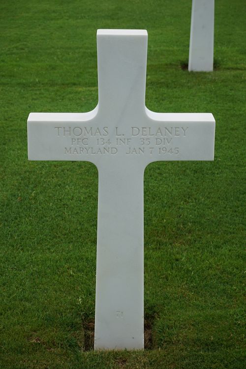 Pfc Thomas L. Delaney attended high school for four years and worked in an aircraft building factory before he enlisted in Clarksburg, West Virginia on 15 June 1943.Source of information: Peter Schouteten, www.abmc.gov, www.wwiimemorial.com, www.archives.gov - WWII Enlistment Record, www.ancestry.com - Headstone and Interment Record / U.S. WWII Draft Cards Young Men / Fairbanks Family Tree, After Action Report 35th Infantry Division, www.findagrave.com - Russ Pickett