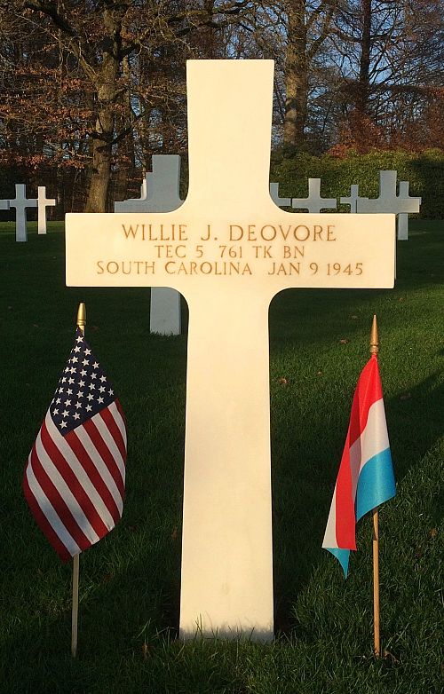 T/5 Willie Deovore was a cook before he enlisted at Fort Jackson, South Carolina.A mine knocked out Deovore's Sherman. The explosion killed him instantly.