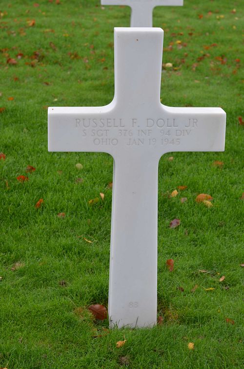 S/Sgt Russell F. Doll Jr. enlisted on 25 June 1942 and was sent overseas in September 1944.He is remembered at the Massillon City Cemetery in Massillon, Stark County, Ohio.