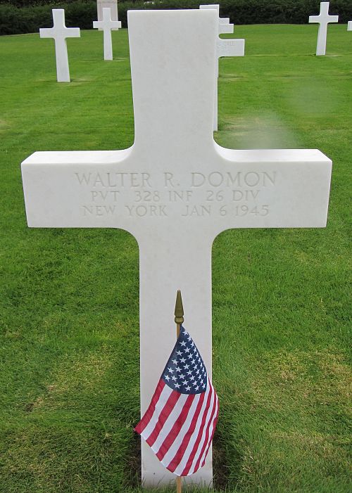 Pvt Walter R. Domon attended Hutchinson - Central High school for one year and was employed by the Worthington Pump & Machinery Company.He enlisted at Fort Niagara, New York on 13 March 1942.