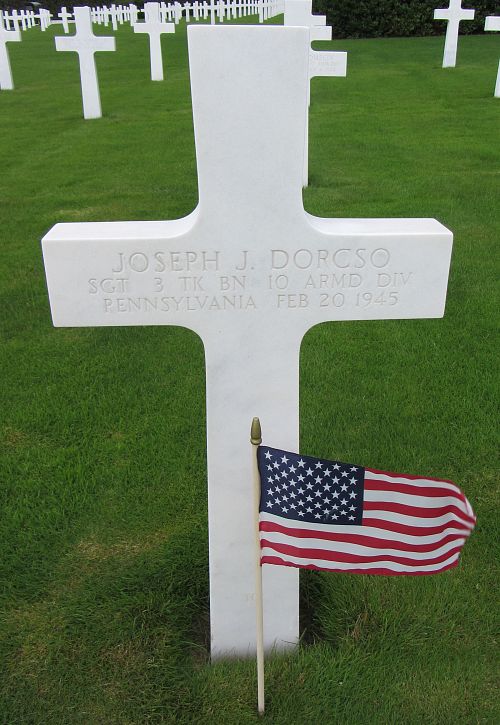 Sgt Joseph J. Dorcso attended high school for four years and was a crane man before he enlisted in Philadelphia, Pennsylvania, on 13 November 1942. He was sent overseas on 8 September 1944.He was killed by artillery shell fragments in his chest.
