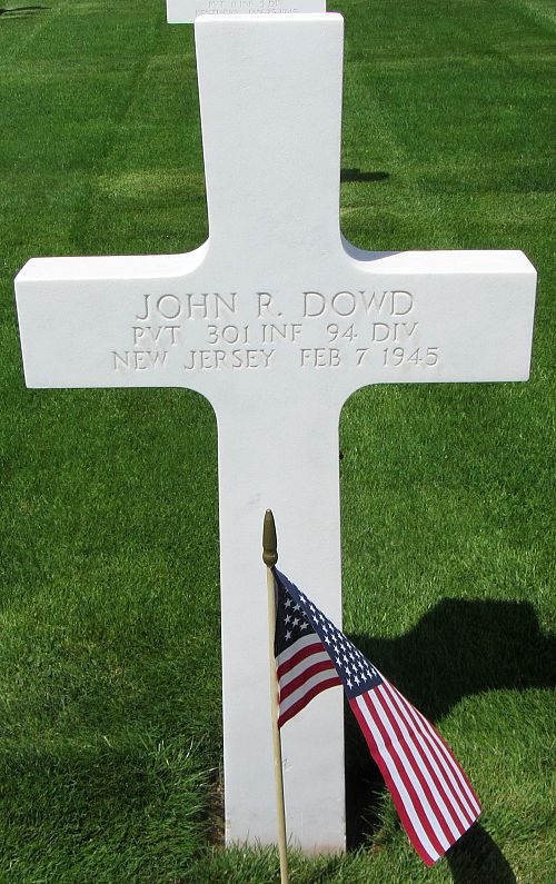 Pvt John R. Dowd attended high school for 4 years before he enlisted in Newark, New Jersey on 13 May 1943.Source of information: Peter Schouteten, www.abmc.gov, www.wwiimemorial.com, www.archives.gov – WWII Enlistment Record, www.ancestry.com - Headstone and Interment Record / 1940 Census, http://www.94thinfdiv.com
