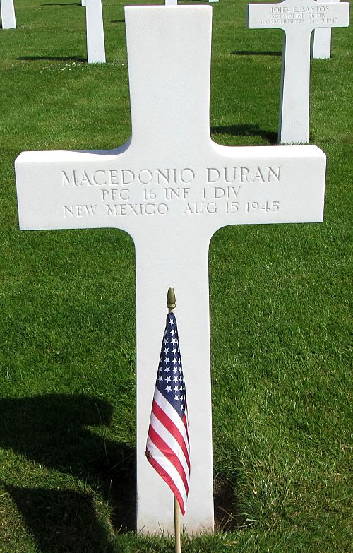 Pfc Macedonio Duran worked on a farm before he enlisted in Santa Fe, New Mexico on 27 October 1942.He was first buried at the Temporary American Military Cemetery in St. Avold, France.