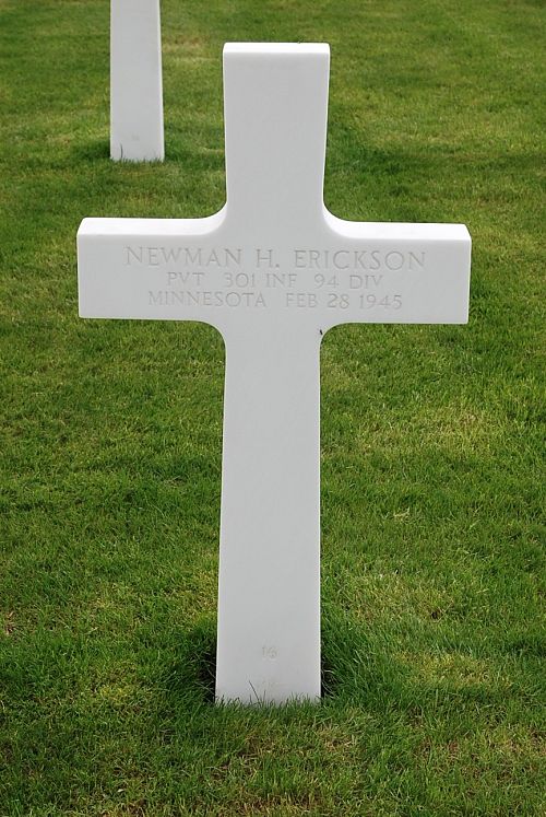 Pvt Newman H. Erickson worked on a farm before he enlisted in Fort Snelling, Minnesota on 4 August 1944.Source of information: Peter Schouteten, www.abmc.gov, www.wwiimemorial.com, www.archives.gov – WWII Enlistment Record, www.ancestry.com - Headstone and Interment Record / Monson Family Tree / 1930/1940 Census / Minnesota Birth Index / U.S. WWII Draft Cards Young Men, http://www.94thinfdiv.com, www.findagrave.com – T Burt