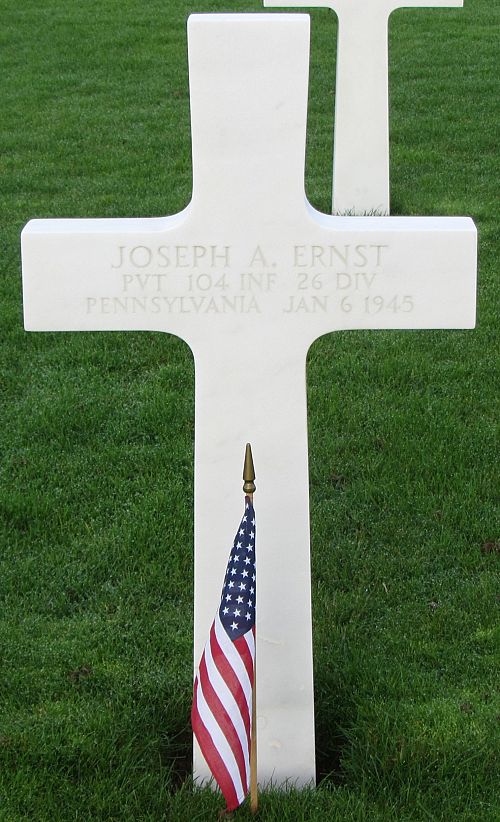Pvt Joseph A. Ernst attended high school for four years and was a clerk before he enlisted in Philadelphia, Pennsylvania on 23 March 1943.Source of information: Peter Schouteten, www.abmc.gov, www.wwiimemorial.com, www.archives.gov - WWII Enlistment Record, www.ancestry.com - Headstone and Interment Record / U.S. WWII Draft Cards Young Men / Pennsylvania Veteran Compensation Application Files WWII / 1940 Census, www.findagrave.com - Tommy Neathery, www.fold3.com - 26th Infantry Division
