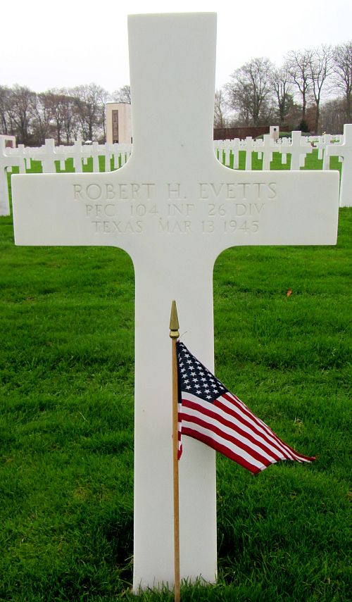 Pfc Robert H. Evetts was employed at the Remington Arms Company Inc. before he enlisted.Source of information: Peter Schouteten, www.abmc.gov, www.wwiimemorial.com, www.ancestry.com - Headstone and Interment Record / U.S. WWII Draft Cards Young Men / Charles Hull Family Tree / 1940 Census, www.findagrave.com, www.fold3.com - 26th Infantry Division