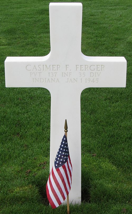 Pvt Casimer F. Ferger attended high school for one year and was an attendant at LaSalle Recreation before he enlisted in Toledo, Ohio on 15 May 1942. He was sent overseas in October 1942.Source of information: Peter Schouteten, www.abmc.gov, www.wwiimemorial.com, www.archives.gov - WWII Enlistment Record / U.S. WWII Draft Cards Young Men / 1920/1940 Census, After Action Report 35th Infantry Division, www.newspapers.com - The South Bend Tribune 21 January 1945
