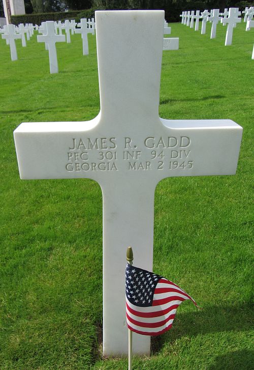 Pfc James R. Gadd enlisted at Fort McPherson Atlanta, Georgia on 5 December 1942.His brother, Pfc Thomas A. Gadd, was killed 21 December 1944 and is buried at the Lorraine American Military Cemetery in Saint-Avold, France.