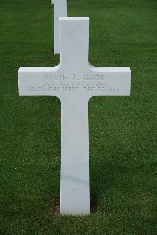 Sgt Gage was first buried at the Temporary American Military Cemetery in Grand-Failly, France.