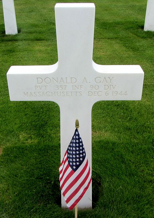 Pvt Donald A. Gay was employed as a miner at Fletcher's Quarry.He volunteered for the Army of the United States in Boston, Massachusetts on 30 October 1942 and was sent overseas in February 1944.