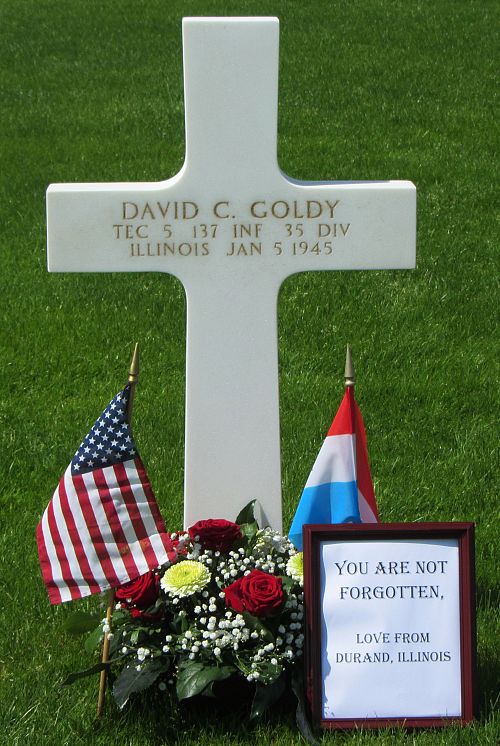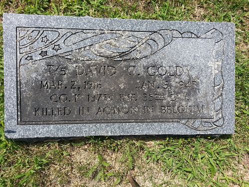 T/5 David C. Goldy attended Durand High School and was employed by the Stephenson County Farm Bureau before he enlisted on 9 August 1943. He was sent overseas on 21 November 1944.He is remembered at the Shirland Cemetery in Shirland, Winnebago County, Illinois.
