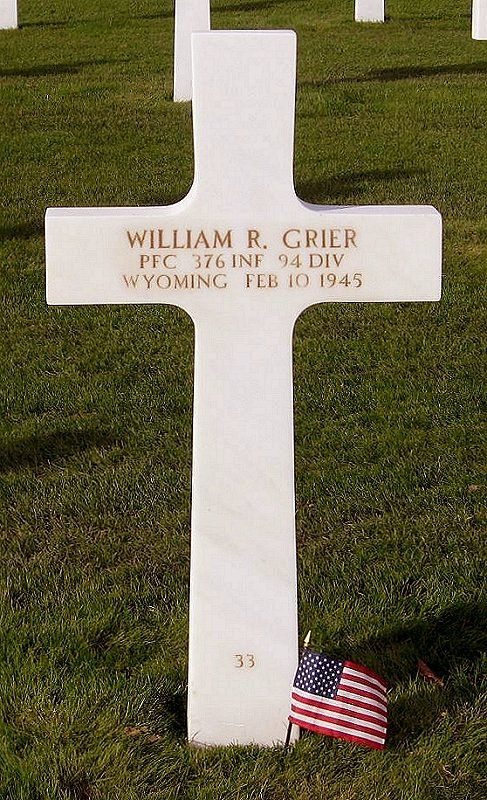 Pfc William R. Grier graduated from Cheyenne High School in 1943.Source of information: Peter Schouteten, www.abmc.gov, www.wwiimemorial.com, www.ancestry.com - Headstone and Interment Record / 1940 Census / U.S. WWII Draft Cards Young Men, http://www.94thinfdiv.com, www.findagrave.com – Russ Pickett