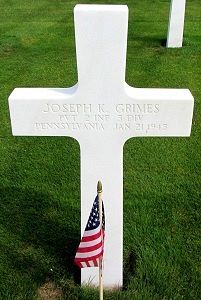 Pvt Joseph K. Grimes worked on a farm before he enlisted in New Cumberland, Pennsylvania on 27 June 1944.