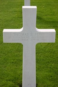 2nd Lt. Thomas B. Perry graduated from York High School in 1934 and Swarthmore College in 1938. He obtained a law degree from the University of California at Berkeley.He enlisted on 23 November 1942 in San Francisco, California. He was sent overseas in February 1944.