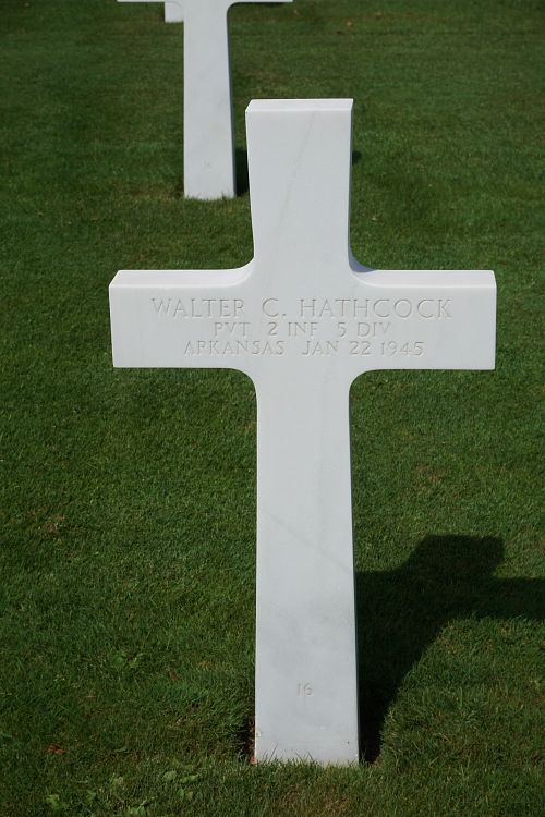 Pvt Walter C. Hathcock was a housekeeper before he enlisted.Source of information: Leo Minne, Terry Hirsch, www.abmc.gov, www.ancestry.com – 1920/1930/1940 Census / U.S. Headstone and Interment Record for U.S. Military Cemeteries on Foreign Soil 1942-1949, A footsoldier for Patton / Michael C. Bilder James G. Bilder, The 5th Infantry Division in the ETO, WWII Draft Card