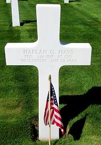 Pfc Harlan G. Hays attended college for two years before he enlisted in Milwaukee, Wisconsin on 5 January 1943.Source of information: Peter Schouteten, www.abmc.gov, www.wwiimemorial.com, www.archives.gov - WWII Enlistment Record, www.ancestry.com - Headstone and Interment Record / Pearson Family Tree, http://87thinfantrydivision.com, www.newspapers.com - Wisconsin State Journal 11 March 1945