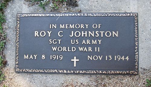 Sgt Roy C. Johnston is remembered at the Greenwood Cemetery Park Rapids, Hubbard County, Minnesota.Source of information: Peter Schouteten, www.abmc.gov, www.wwiimemorial.com, www.archives.gov, www.ancestry.com - Headstone and Interment Record / Erickson Family Tree, www.findagrave.com - Joan Edmonson