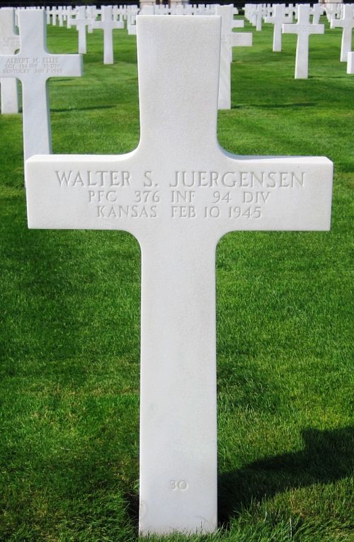 Pfc Walter S. Juergensen graduated from Great Bend High School.He was inducted 26 November 1942 and trained at Camp Phillips and Camp McCain, Mississippi.