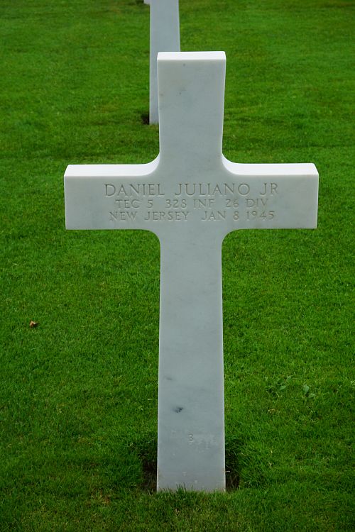 His brother Alfred B. Juliano is buried next to him.Source of information: Peter Schouteten, www.abmc.gov, www.wwiimemorial.com, www.ancestry.com - Headstone and Interment Record / U.S. WWII Draft Cards Young Men / Haas Family Tree / Keary Family Tree, www.fold3.com - 26th Infantry Division