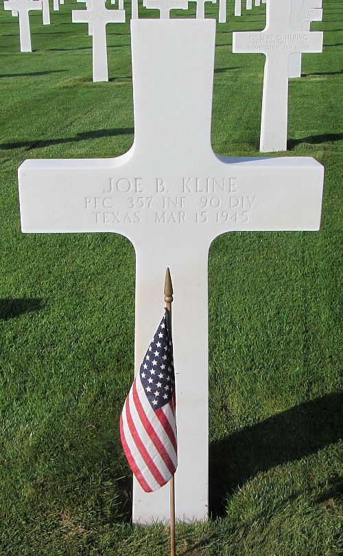 Pfc Joe B. Kline attended high school for 1 year and worked on a farm before he enlisted at Fort Sam Houston, Texas on 17 August 1944.Source of information: Peter Schouteten, www.abmc.gov, www.wwiimemorial.com, www.archives.gov – WWII Enlistment Record, www.ancestry.com - Headstone and Interment Record / U.S. WWII Draft Cards Young Men / Baker Korntved Family Tree, www.findagrave.com – Ralph Terry, www.newspapers.com – The Austin American Texas - 15 April 1945