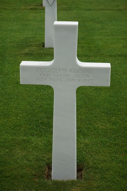 Pvt Rudolph Kuphal was employed at the Ruf Machine Company before he enlisted in New York City, New York on 22 March 1943. He was sent overseas in November 1943.He was killed by artillery shell fragments.