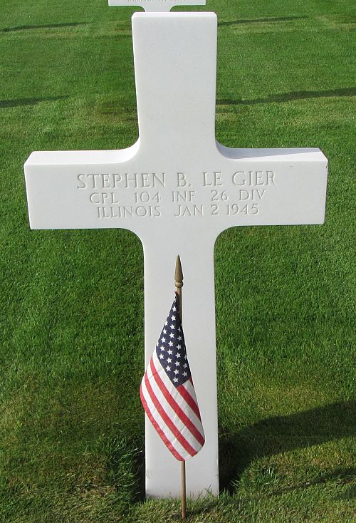 Cpl Stephen B. Le Gier was a lithographer before he joined the Regular Army on 13 November 1939.Source of information: Peter Schouteten, www.abmc.gov, www.wwiimemorial.com, www.archives.gov - WWII Enlistment Record, www.ancestry.com - Headstone and Interment Record / Lovellette Le Gier Family Tree, www.fold3.com - 26th Infantry Division